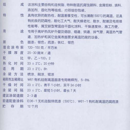 耐高温防腐涂料要求是耐温高温,耐温要达到1700℃,采用高温溶液,水基无机自固化耐热涂料,其物理性能、化学性能和使用性能均达到国际先进水平。该涂料的基料和填料均由耐热、不燃的无机物组成。基料中含有大量OH活性基团,它与填料中的活性组分及钢铁活性表面快速反应,生成三维结构的无机聚合物。