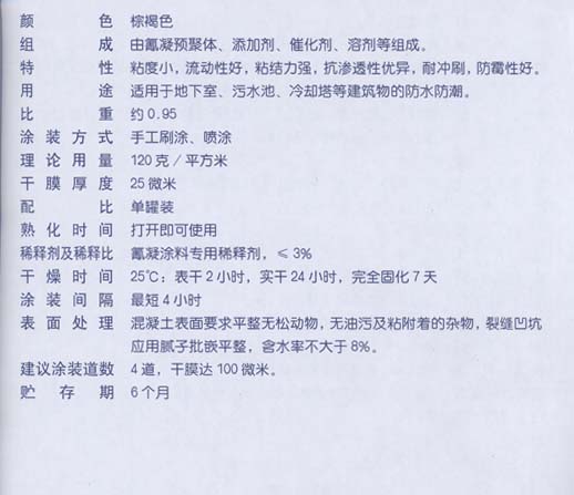 是以氰凝高聚物为基材加以改性环氧树脂乳液的一种双组份高聚物分子改性基高分子防水,防腐系统。由氰凝高聚物为基材加以改性环氧树脂乳液的乳液共混体,加入基料和适量化学助剂和填充料制作而成。是国内首创的既防水又能防腐的两栖产品。寿命长,施工方便,长期浸泡在水里寿命在50年以上。